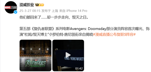 漫威官方复兴:“27东说念主并非最终声势,更多惊喜恭候解锁。”