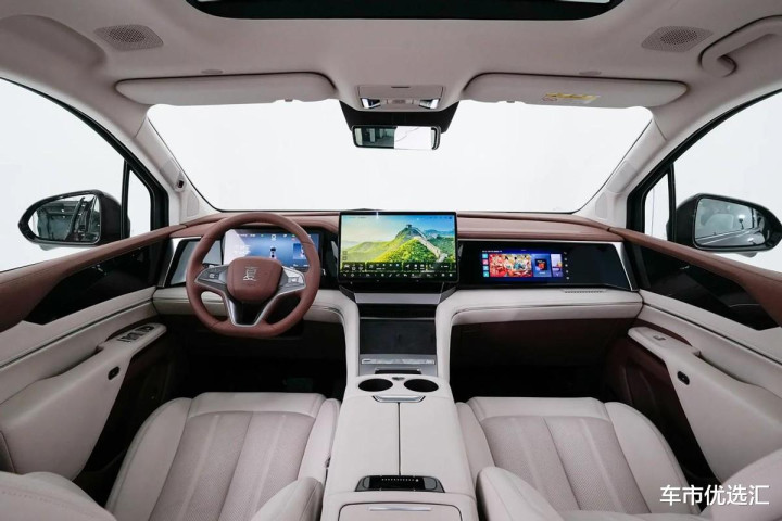 看完毕外不雅,紧接着再来聊一聊内饰部分,领先可以看到比亚迪夏前中控台区域,是给与了全新的家眷式谈话打造,以蹊径式布局为主,况且搭配了三块液晶大屏,搭配上凌厉的线条以及双拼色配色,营造出了很直率豪华的不雅感服从。另外比亚迪夏合座内饰的用料和作念工也都在线,基本上看得见摸得着的方位都被皮革软包材质障翳,细节处则使用了烤漆和镀铬材质荫庇。