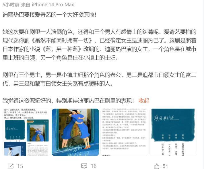 凭据知情东谈主士泄露,迪丽热巴将接拍一部“王炸剧”,这部剧即是《天然弗成同期领有一切》,是凭据热点作品改编而成,主要抒发的情理是:宇宙上笃定有另一个我,作念着我不敢作念的事情,过着我思过的生计。